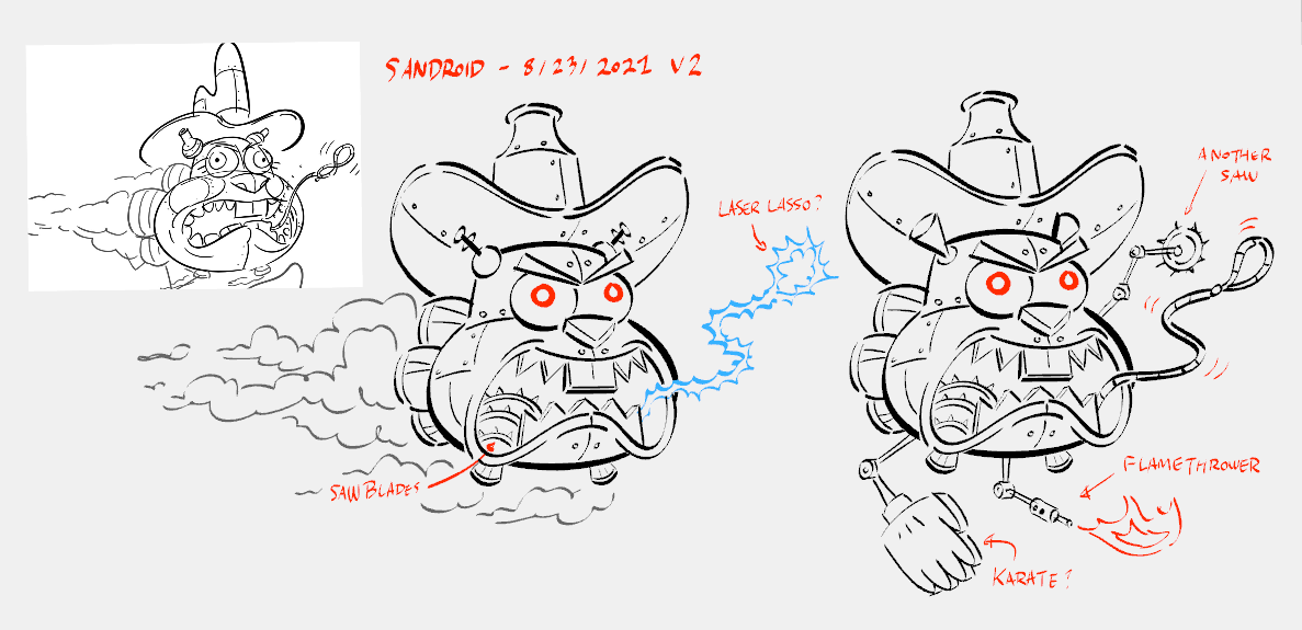 - ↑ 7,0 7,1 7,2 Simon Edwards on Twitter - "Some weapon ideas for Sandroid..."
