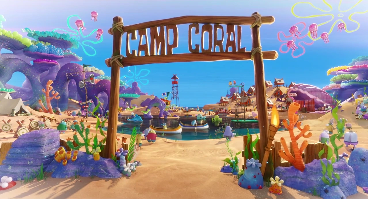 El "Campamento Coral" (también llamado "Kamp Koral" en la serie del mismo nombre es un campamento de verano ubicado en el Bosque de Algas. Aparece por primera vez en la película Bob Esponja: Al Rescate y es el escenario principal de la próxima serie derivada Kamp Koral: Los Primeros Años de Bob Esponja.