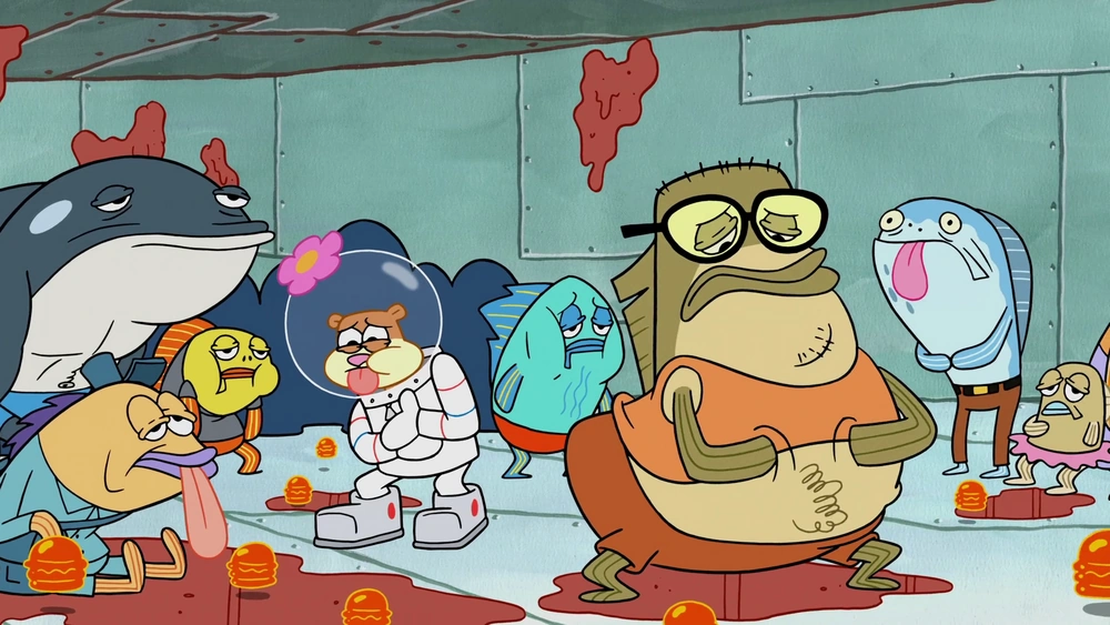- Cuando todos se convierten en una cangreburger, se parecen a la imaginación de Bob Esponja en "Témele a una Cangreburger".