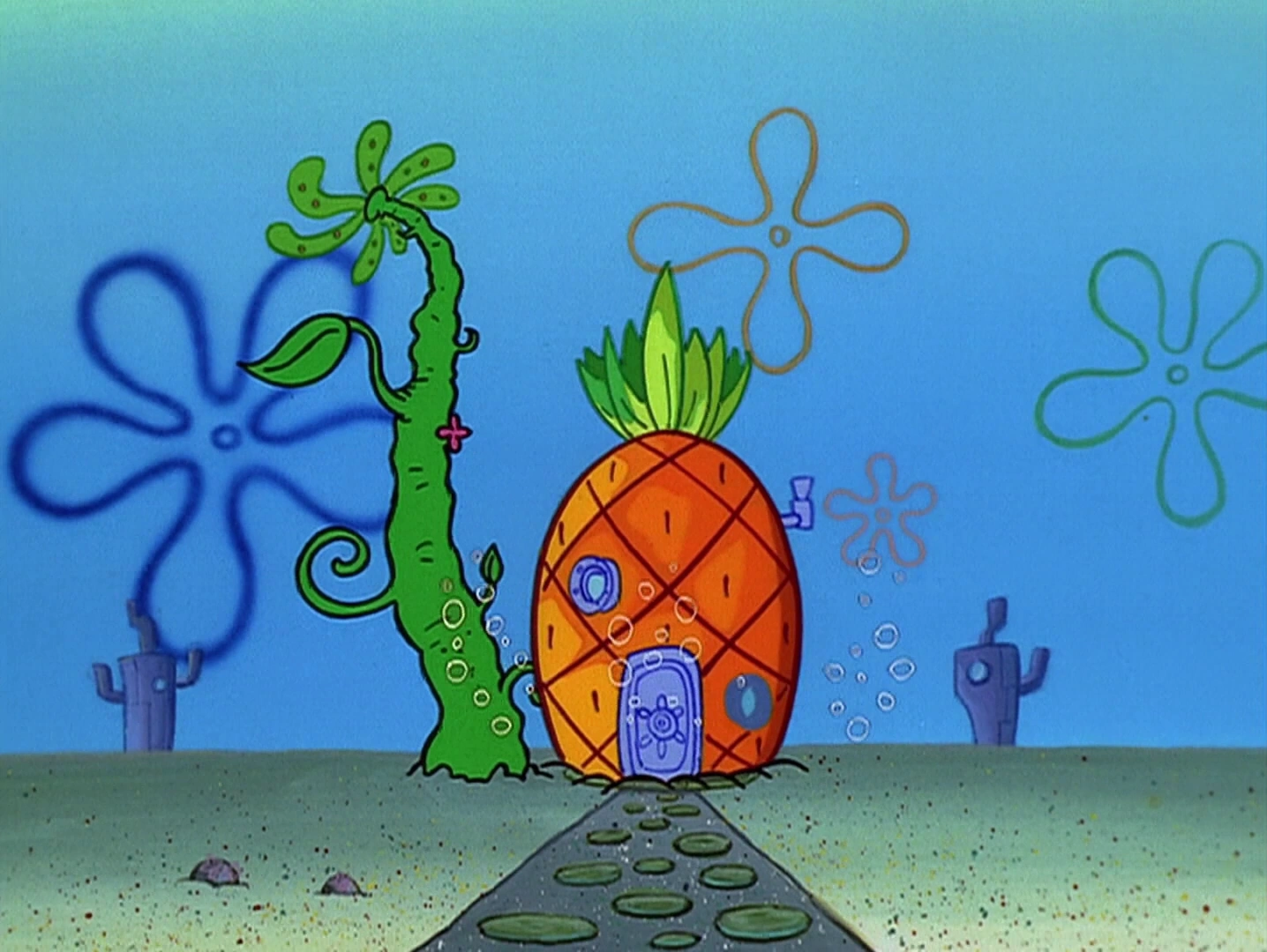 Aunque suele ser naranja, la casa de Bob Esponja es azul oscuro por la noche.