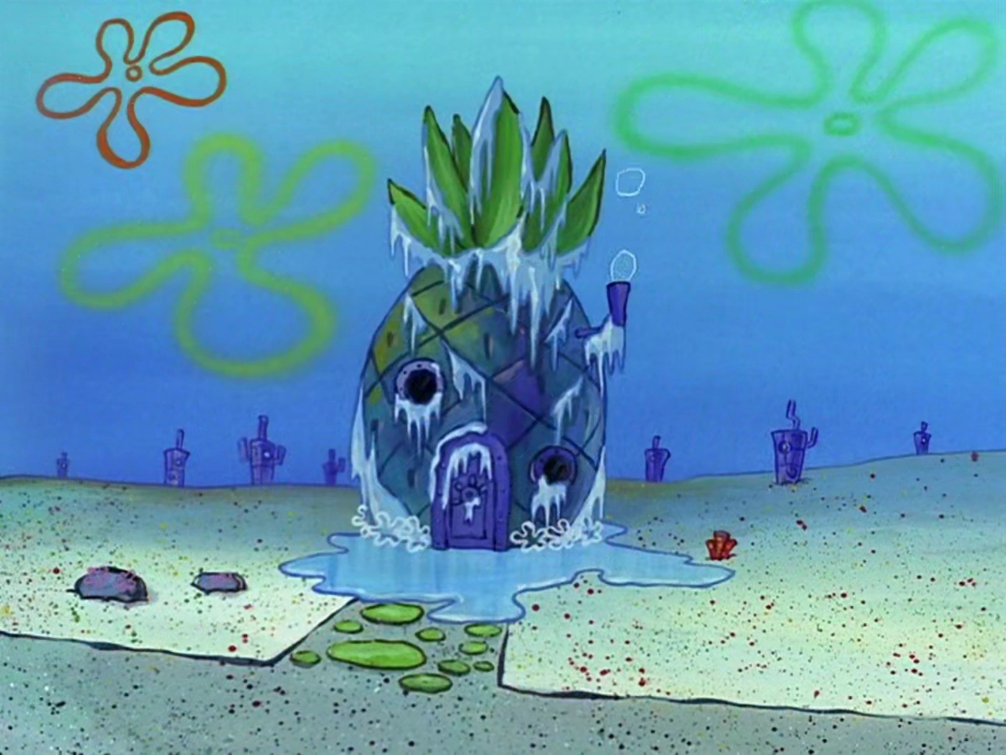 La casa de Bob Esponja siendo consciente en el episodio "Atrapados en el Congelador".