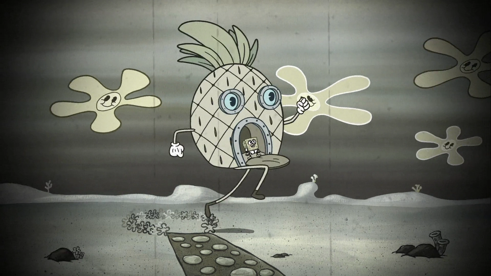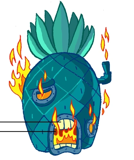 - "Expulsado" - Bob Esponja hunde los dientes en la piña, lo que deja marcas de dientes en el exterior.