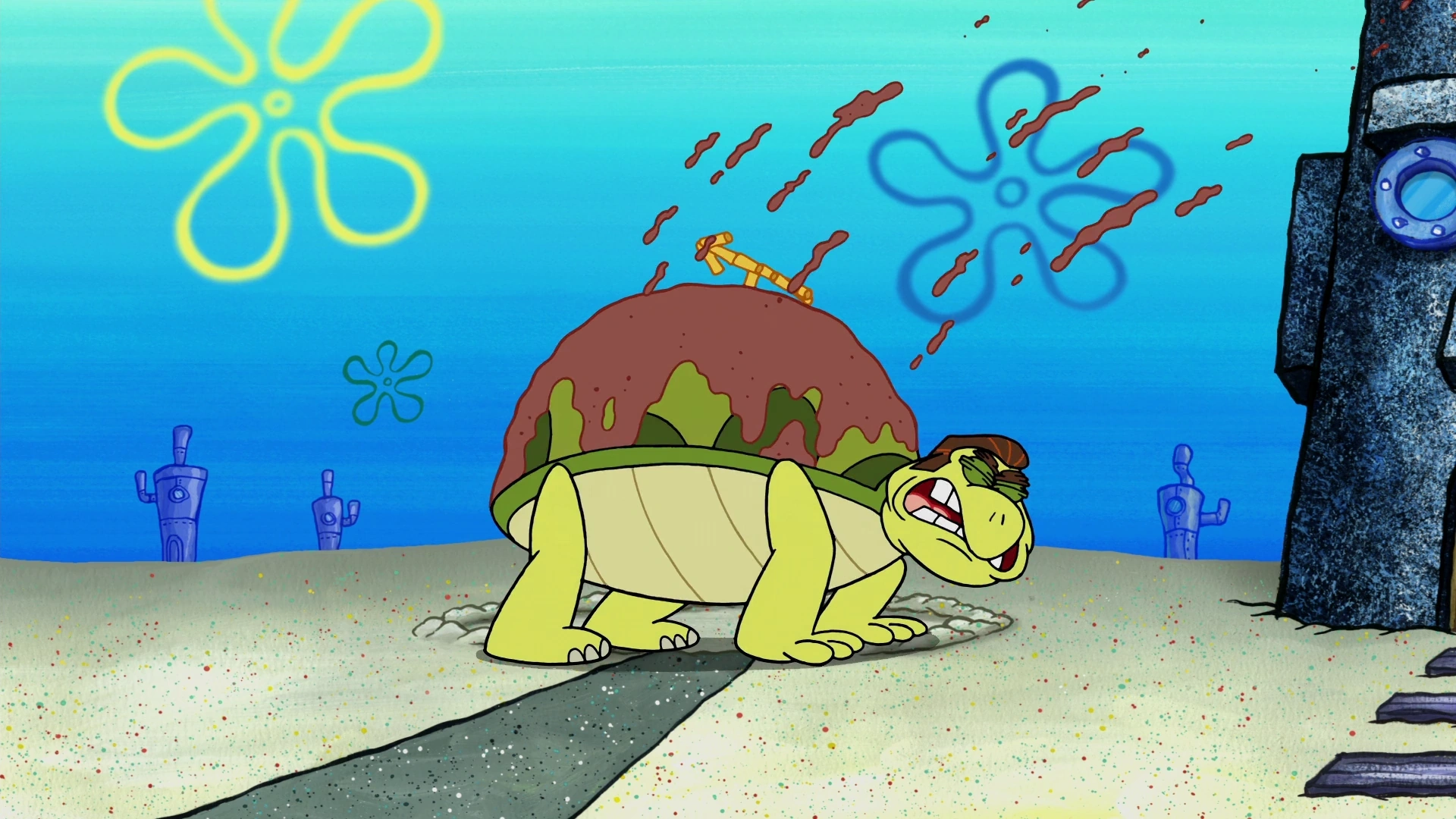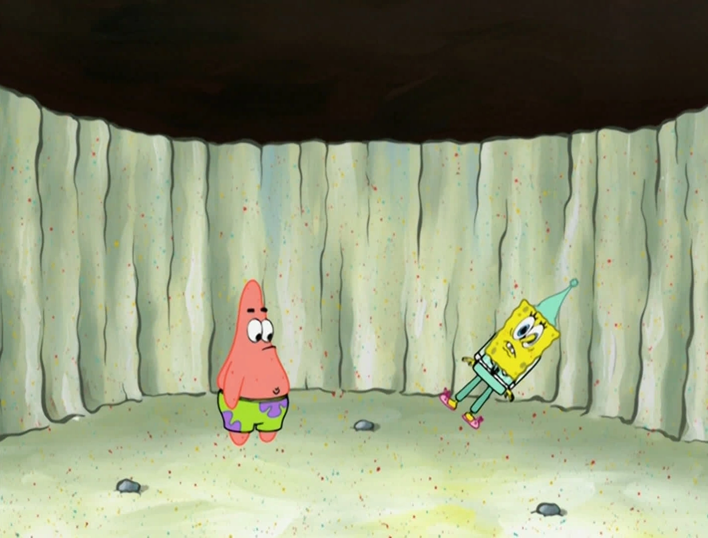 - "¡Plankton!"- Bob Esponja, mientras es controlado por Plankton, atraviesa las paredes.