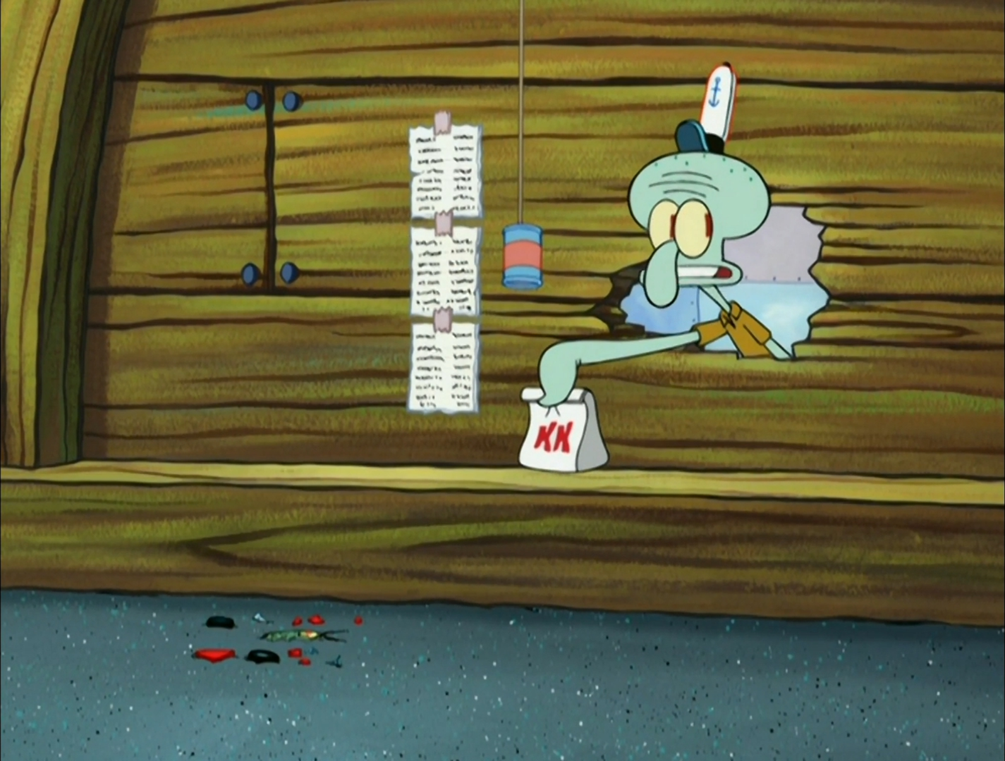 En el episodio "Objetos Perdidos," en la cocina hay una trampilla que conduce a la habitación de "Objetos Perdidos" del Crustáceo Cascarudo, donde se guardan todos los objetos y personas perdidos en el restaurante hasta que sean reclamados.