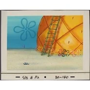 - Cuando Calamardo está pintando y se distrae con el papel de Bob Esponja, su imagen tiene la boca cerrada, pero cuando la rompe, una de las mitades muestra que la boca está abierta con una sonrisa.