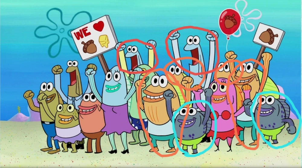 - En una toma de la multitud, varios peces aparecen varias veces a la vez.
