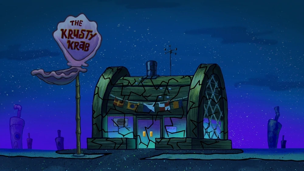 - Cuando la Guarida Cascaruda se está agrietando y está a punto de ser destruida, el letrero dice "The Krusty Krab" en lugar de "The Krusty Lair".
