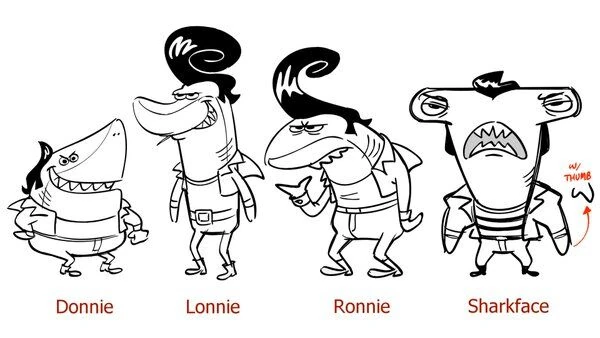 Diseño de Personajes de los Tiburones Compartido por Adam Paloian en su Twitter.